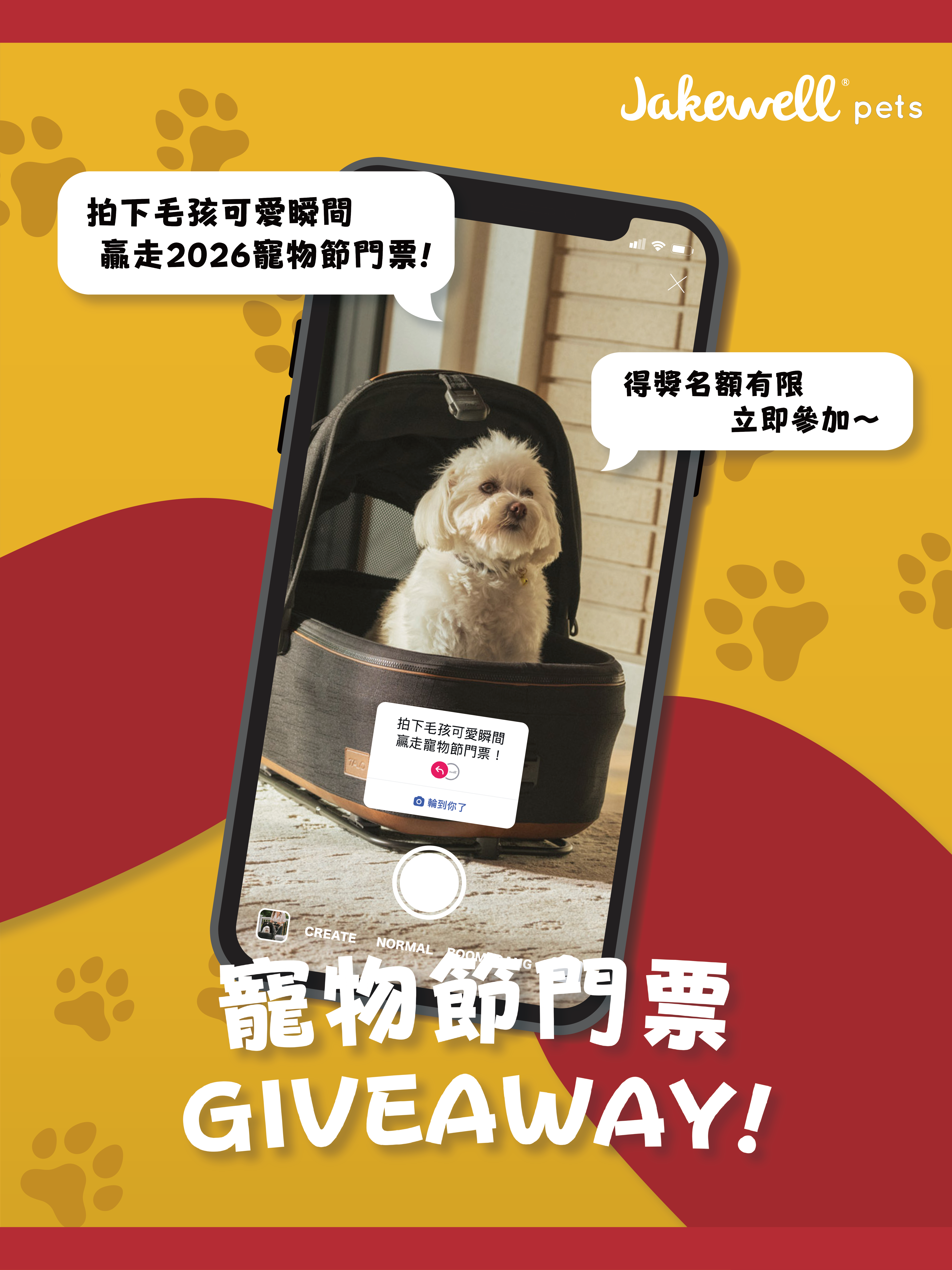 🎉Jakewell首次參加香港寵物節2026,仲會帶埋Tavo, Wonderfold, Thule嘅產品去添✨~咁好嘅機會緊係要同大家見下面啦🥰!立刻拍低毛孩可愛瞬間,贏走2026寵物節門票啦🤩~最可愛嘅毛孩靚相就可以獲得2026寵物節門票兩張㗎喇,想知詳細玩法就要留意下方喇❤️!