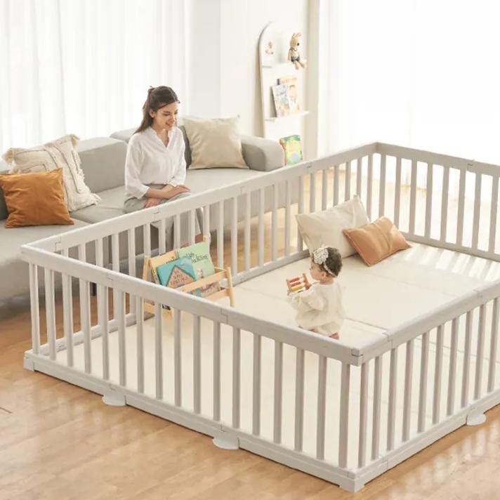 兒童圍欄高度建議落在60-70公分之間,既能防止寶寶輕易翻越,又不會阻礙爸媽觀察視線。通透的柵欄設計讓孩子能看到父母,減少分離焦慮,也讓爸媽在煮飯、做家務或工作時隨時注意寶寶動向。