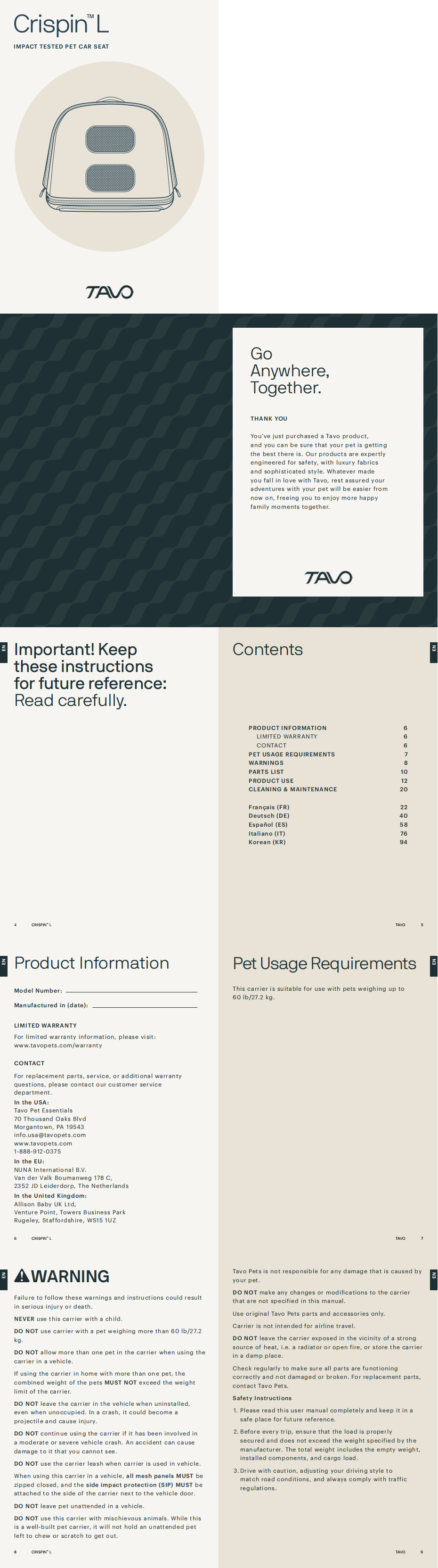 Tavo - Crispin Pet Travel Crate L Product Use/Installation Instruction Manual