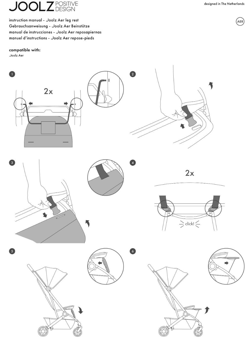 Joolz Aer 嬰兒車擱腿板 - 產品使用/安裝說明手冊