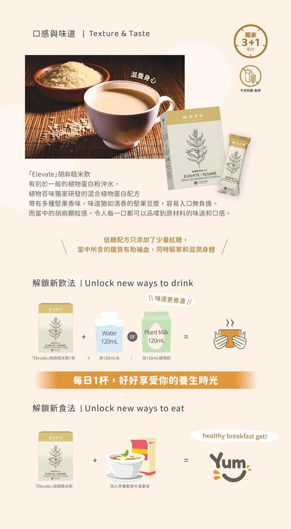 至2026-04-09T03:00:00.000+00:00截止 指定分類,LV3:購買滿HK$2,999,再送Elevate胡麻糙米飲(7包/盒)